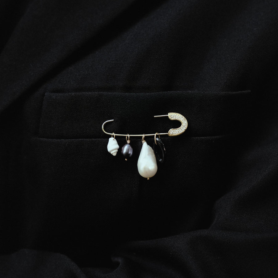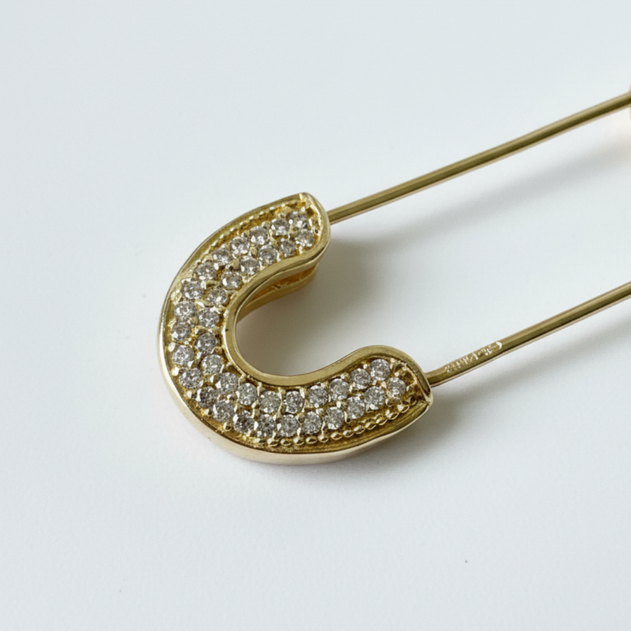 Elegante broche de oro con zirconias corte brillante en un extremo. La pieza perfecta para elevar tus looks, puedes llevarlo...